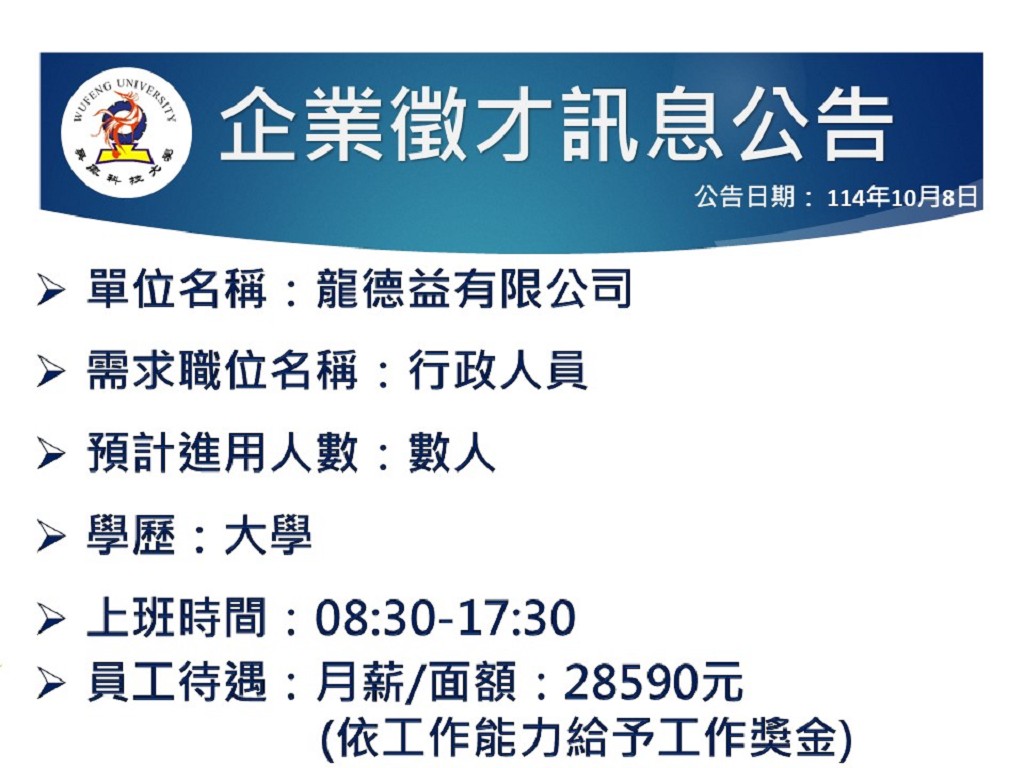 【企業徵才】龍德益有限公司