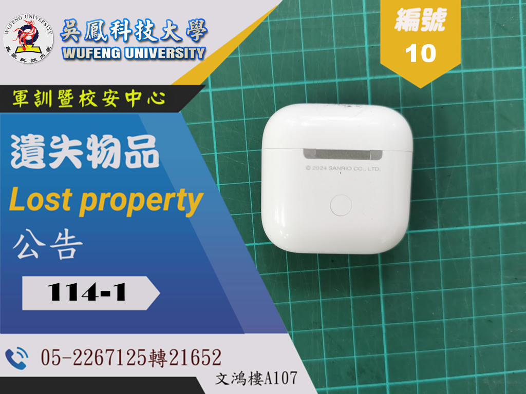114年11月26日拾獲無線耳機,請至校安中心鄭嘉文處領取,如因故不在則由校安中心其他同仁協助。