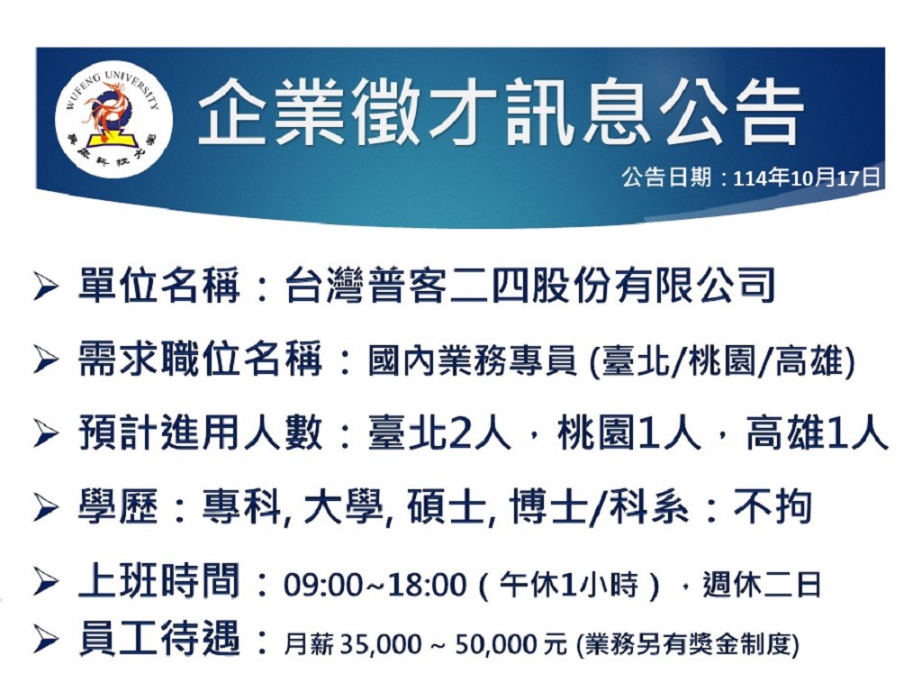 10.需求職位名稱:【國內業務專員】 (臺北/桃園/高雄)