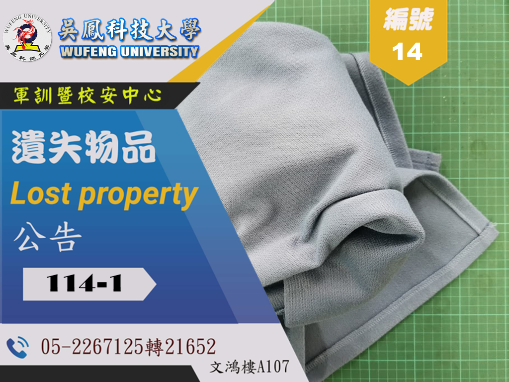 114年12月26日拾獲外套,請至校安中心鄭嘉文處領取,如因故不在則由校安中心其他同仁協助。