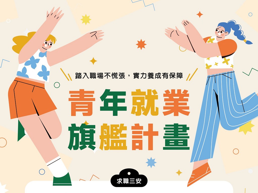 勞動部為協助15歲至29歲青年順利就業,推行「青年就業旗艦計畫」, 結合事業單位用人需求,規劃工作崗位訓練,以強化青年工作能力,並透過先僱用後訓練之機制,打造安心訓練環境!
