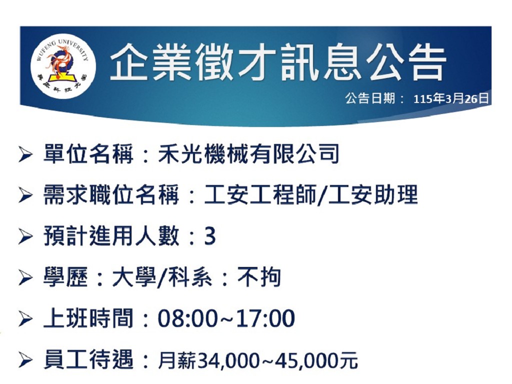 【企業徵才】禾光機械有限公司